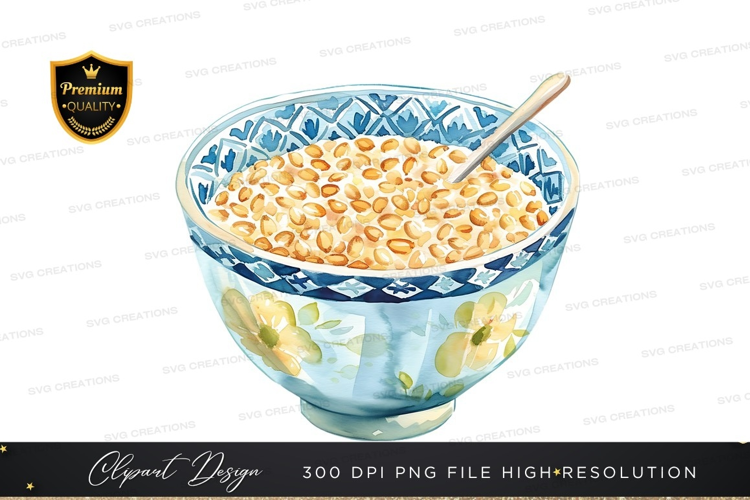 Flower Pattern Clipart Milk Png Breakfast Bowl Cereal Wooden Spoon