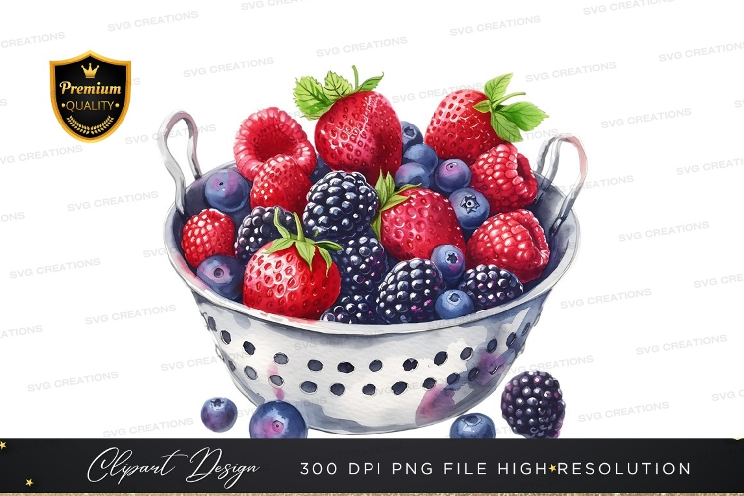 Illustration Fruit Colorful Fresh Berries Strawberries Raspberries Blackberries Blueberries Colander
