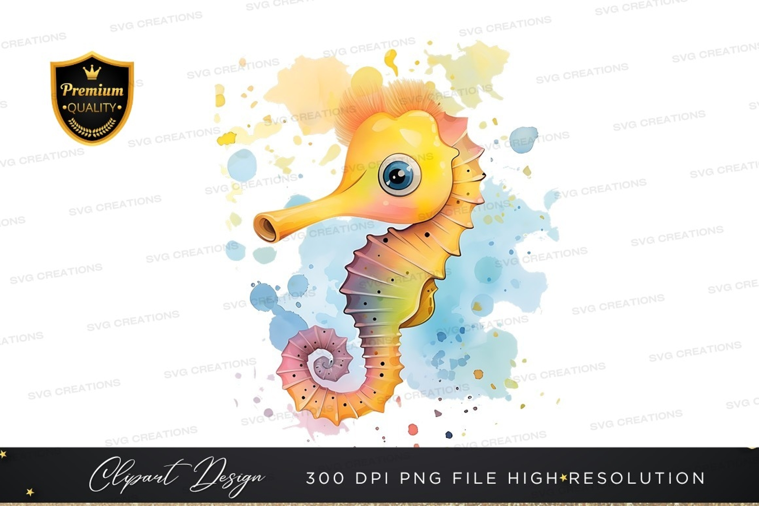 Illustration Watercolor Whimsical Friendly Colorful Clipart Png Marine Seahorse Tail