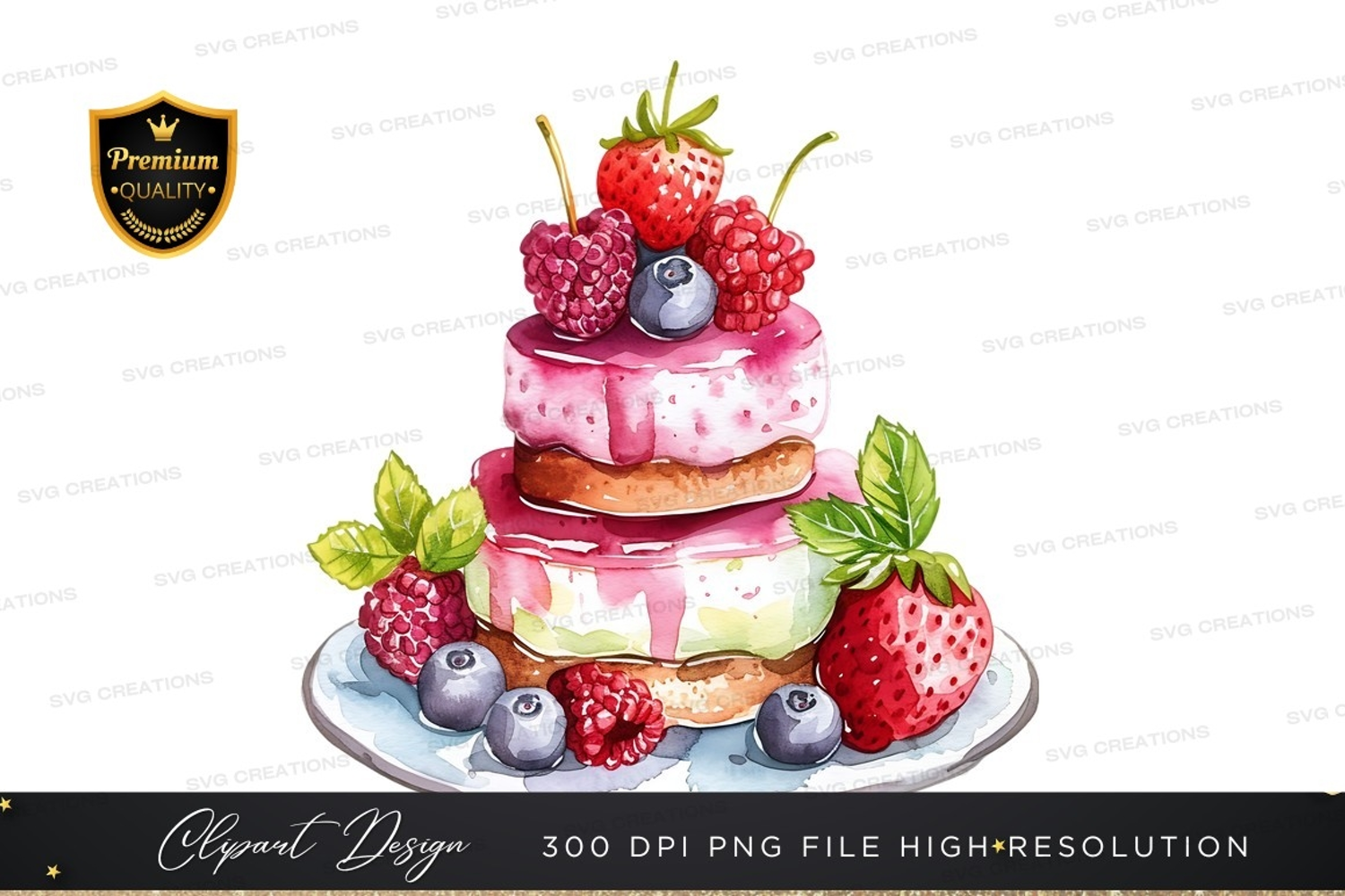 Illustration Watercolor Cake Strawberry Raspberry Blueberry Dessert Berry Icing