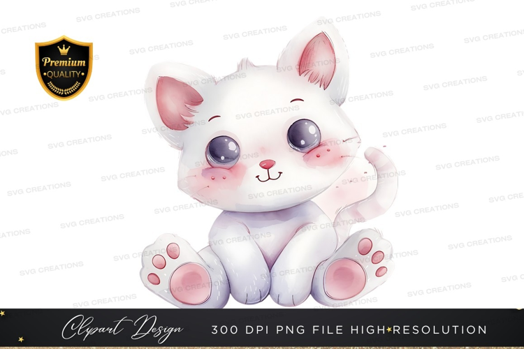 Cartoon Animal Cute Pink White Kitten Paws Innocent Blush Large Eyes