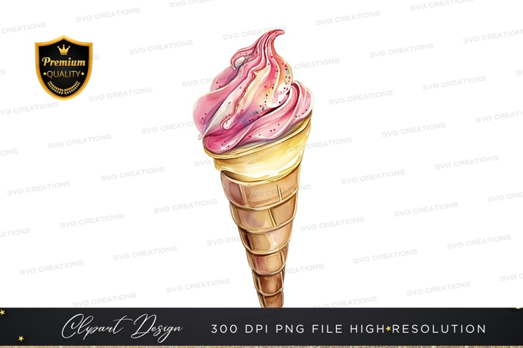 Illustration Watercolor Strawberry Ice Cream Dessert Cone Sprinkles Waffle Cone Layered Cake Chocolate Sauce