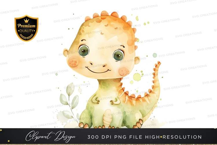 Cartoon Watercolor Cute Friendly Clipart Blue Png Cat Dinosaur Golden Crust