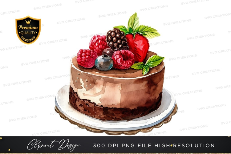 Similar Design Products to Delicious chocolate cake with berries clipart png