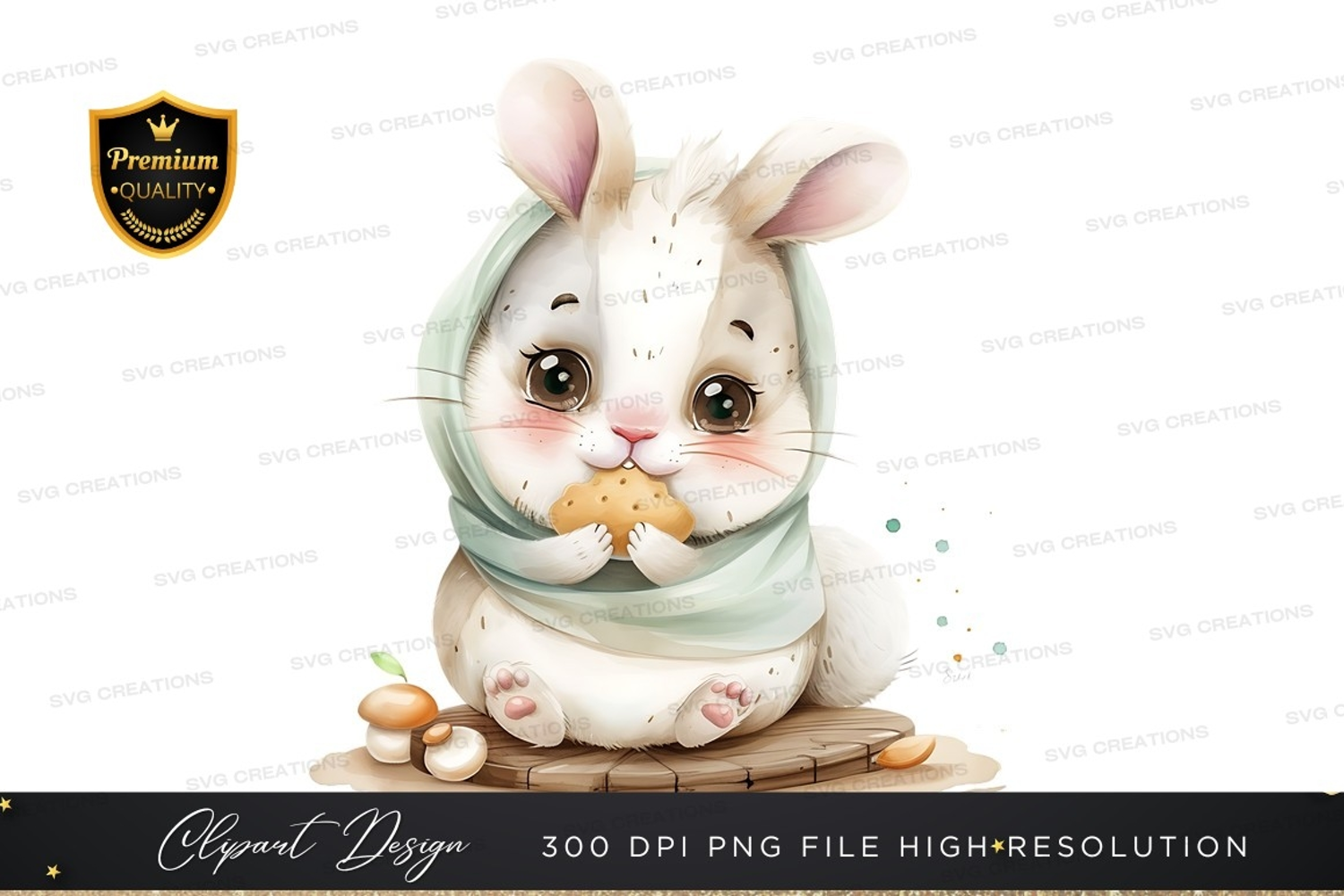 Illustration Cute Cookie Scarf Bunny Rabbit Eating Wooden Platform