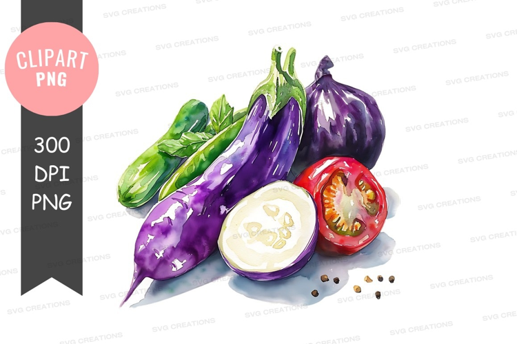 Watercolor Clipart Vegetables Tomato Eggplant Pepper Png Cucumber