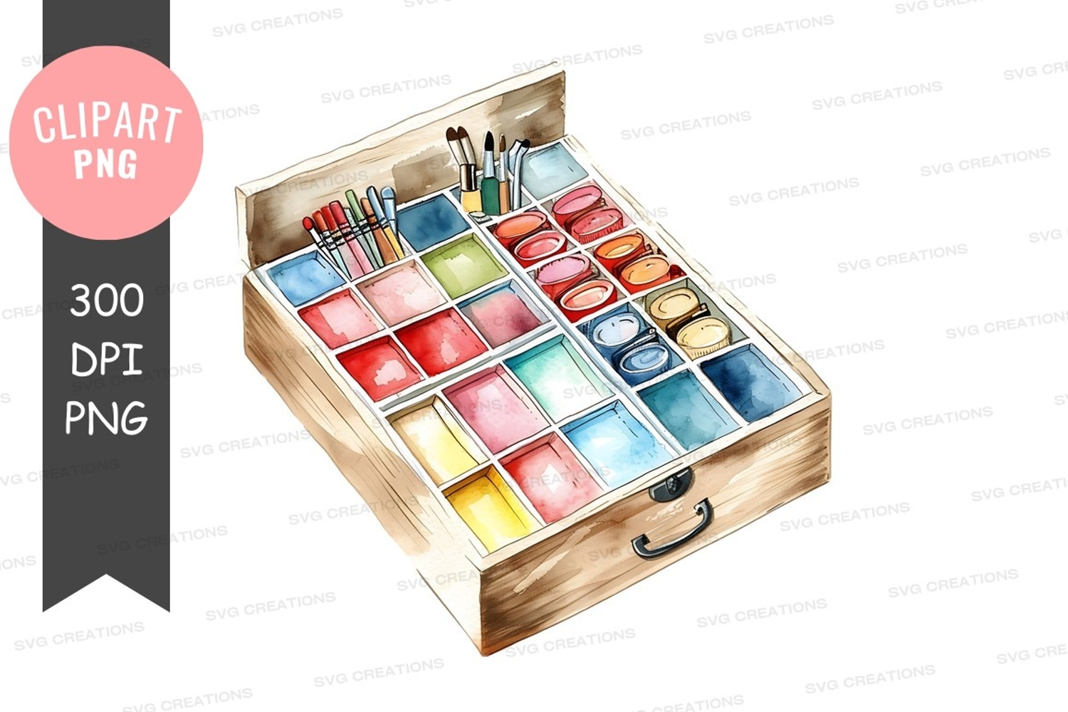 Watercolor Brushes Art Painting Clipart Png Paints Wooden Box Art Supplies