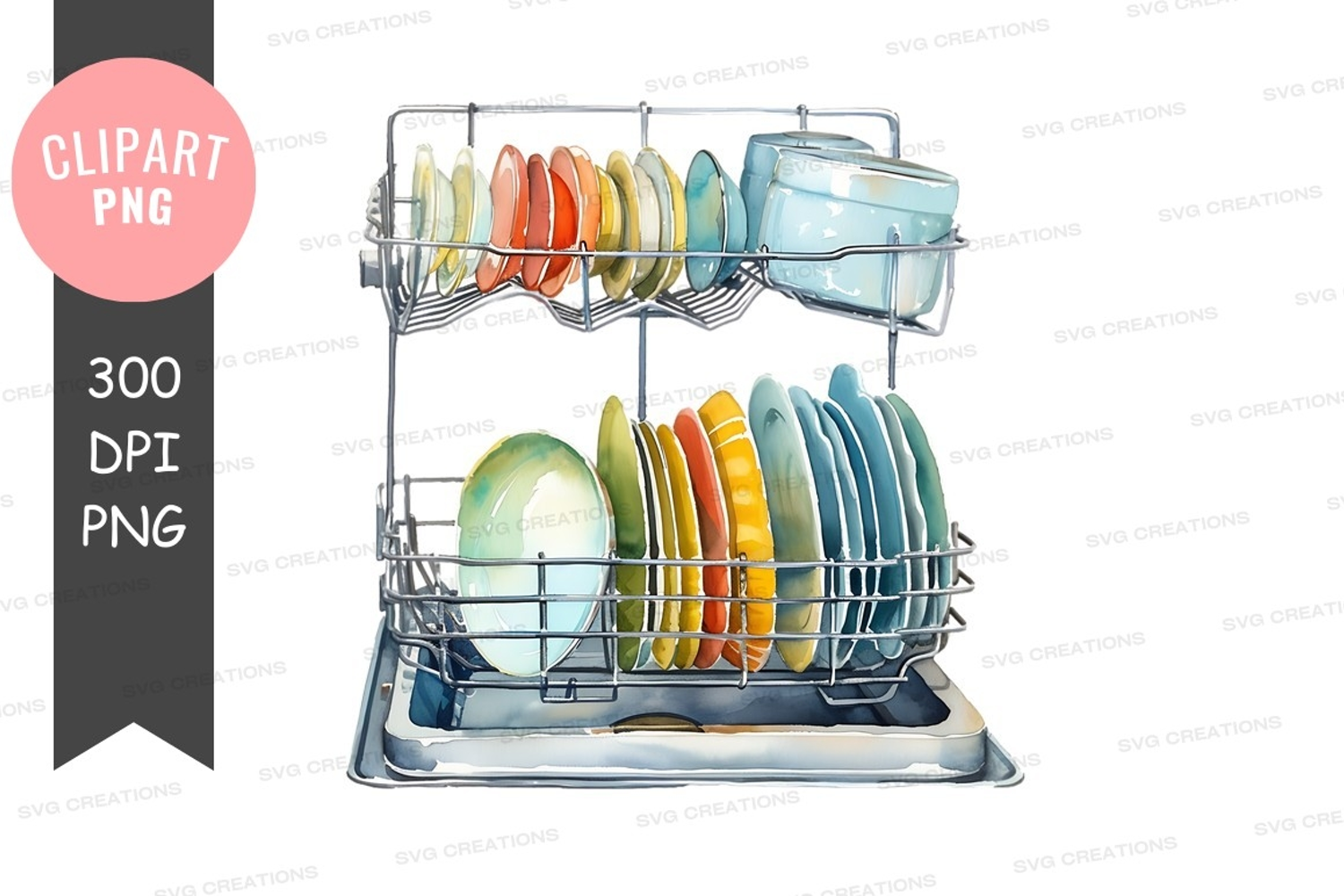 Similar Design Products to Dish rack with colorful dishes clipart png