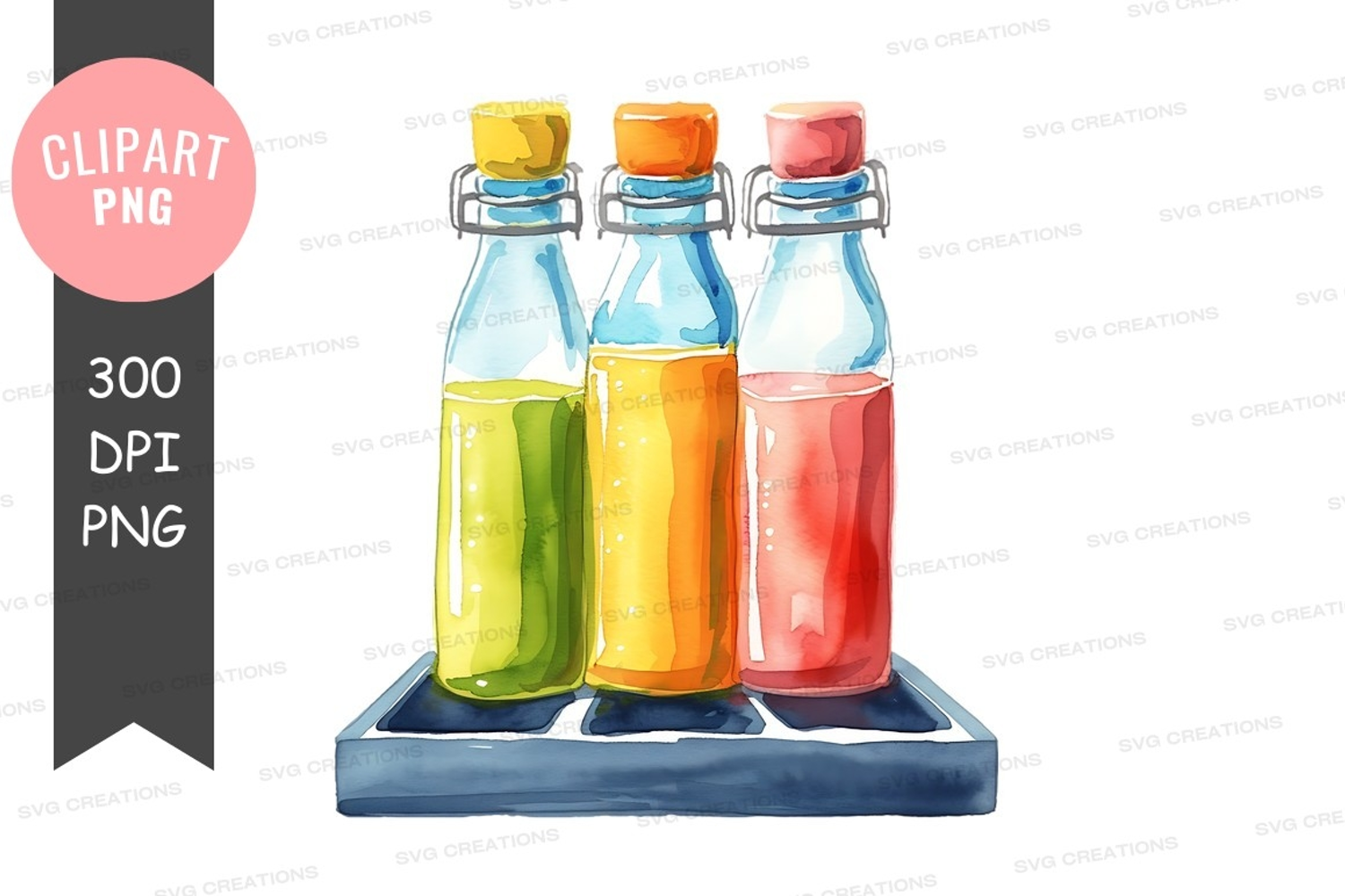 Illustration Watercolor Colorful Png Glass Cork Tray Bottles Liquids