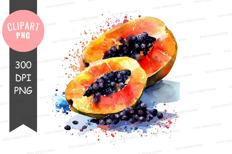 Illustration Fruit Watercolor Clipart Papaya Tropical Fruit Paint Splashes