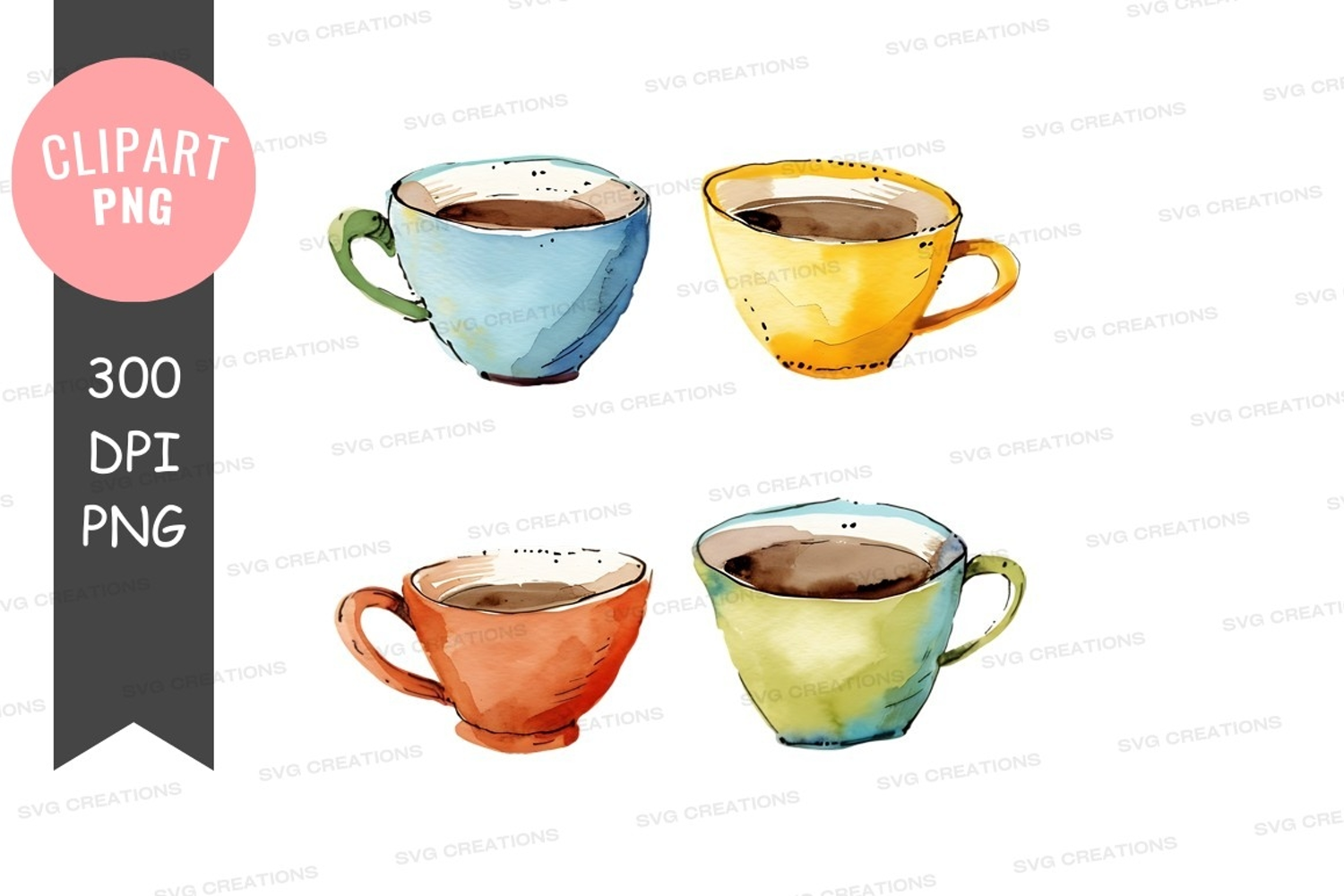Illustration Drinks Coffee Colorful Artistic Clipart Cafe Cups Coffee Cups Handles
