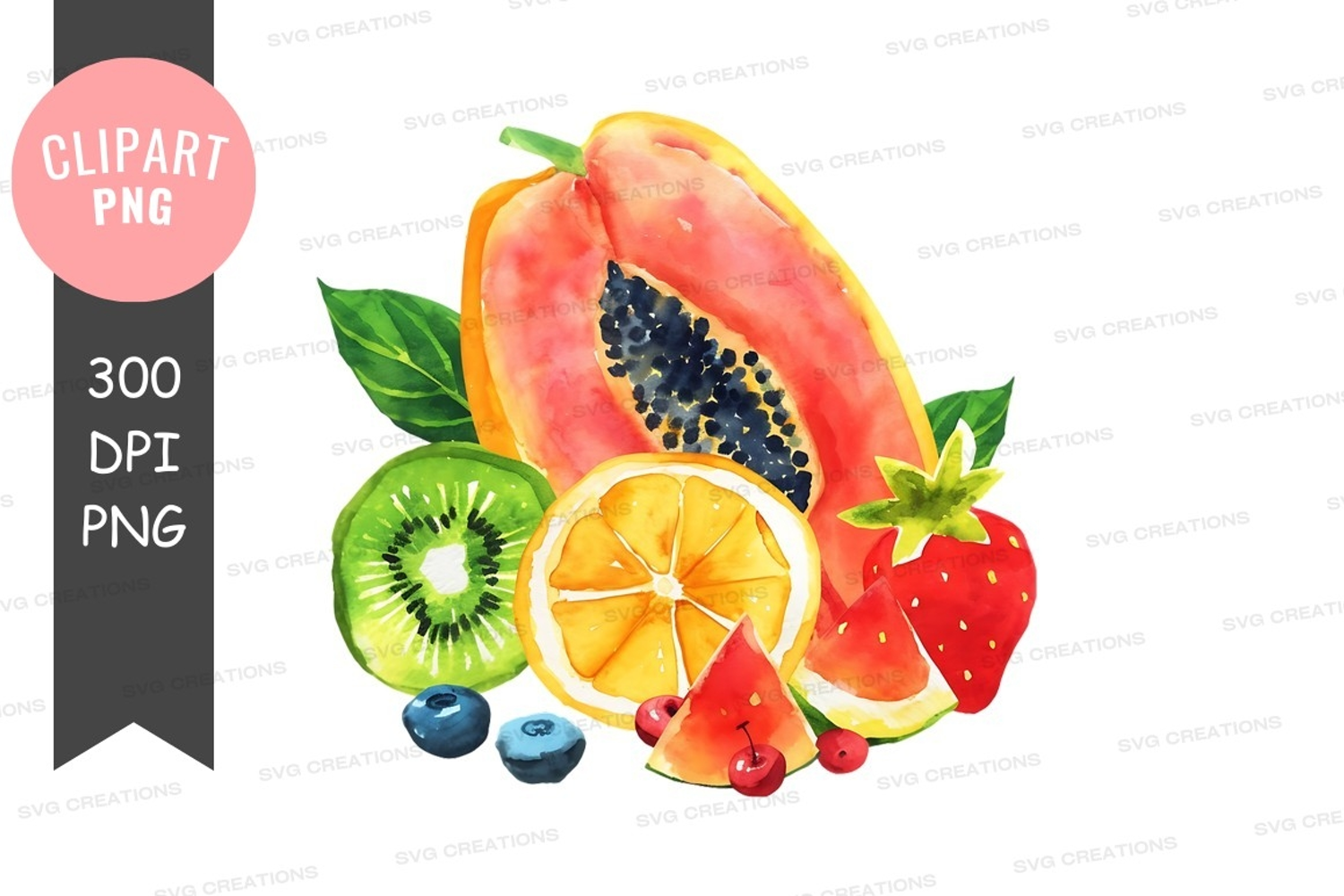 Illustration Fruit Clipart Orange Strawberry Png Blueberries Kiwi Papaya Watermelon
