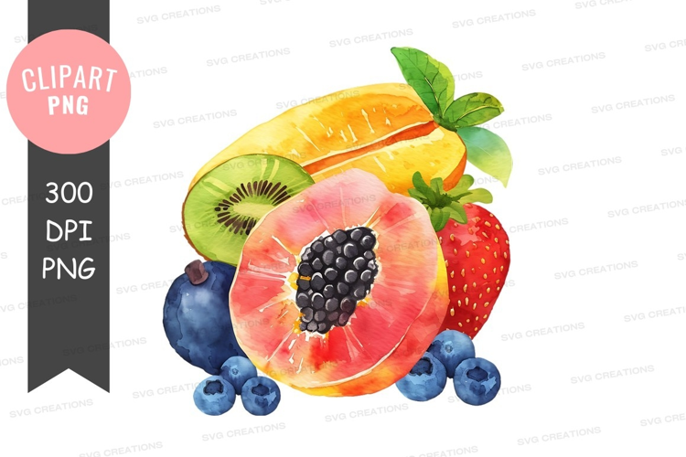Illustration Fruit Watercolor Clipart Strawberry Mango Png Blueberries Kiwi Papaya