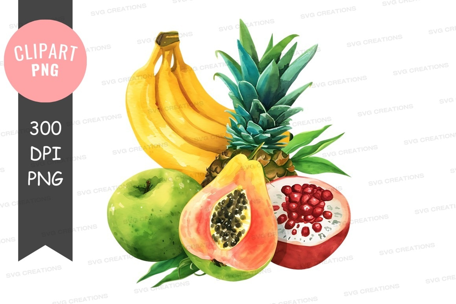 Illustration Fruit Clipart Tropical Banana Apple Pomegranate Png Papaya Pineapple