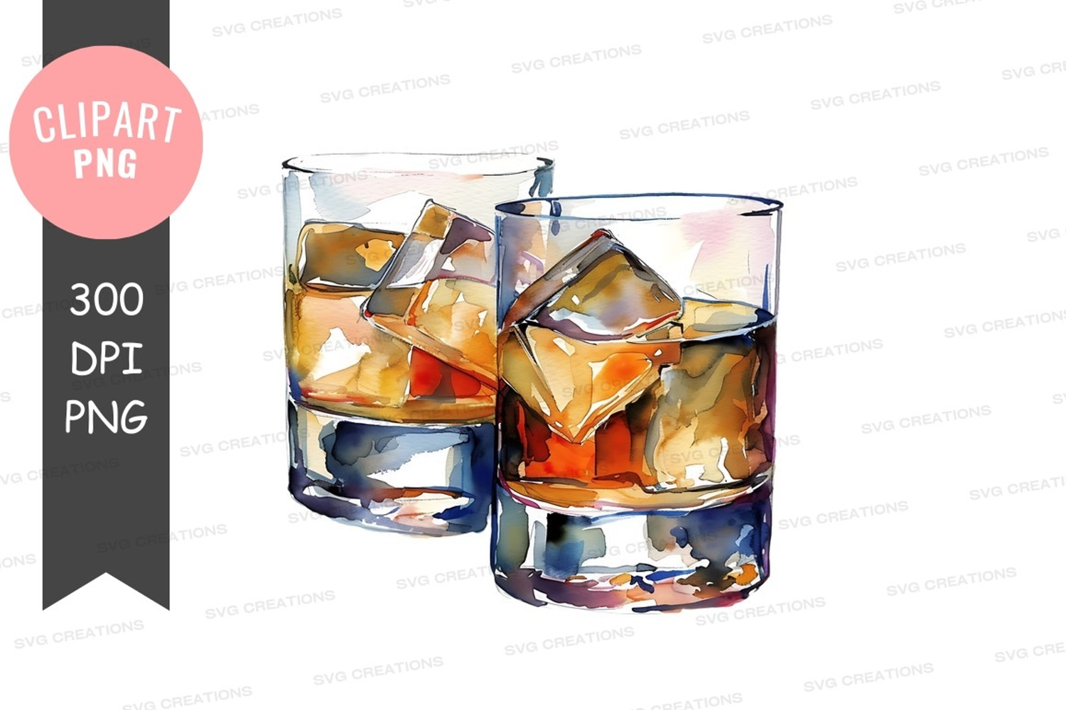 Illustration Whiskey Drink Alcohol Transparent Glass Cocktail Ice Amber