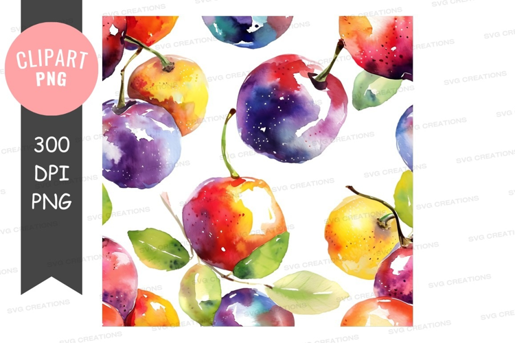 Colorful watercolor fruits clipart png example image 1