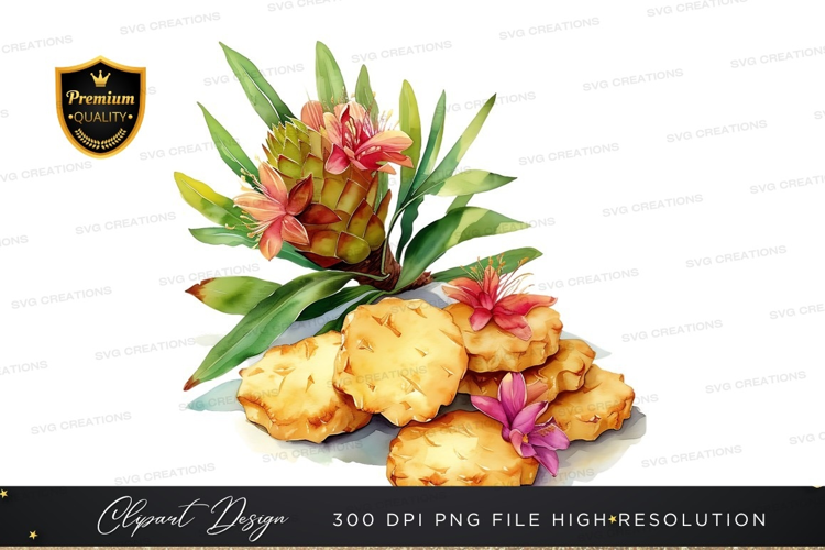 Tropical pineapple with flowers clipart png example image 1