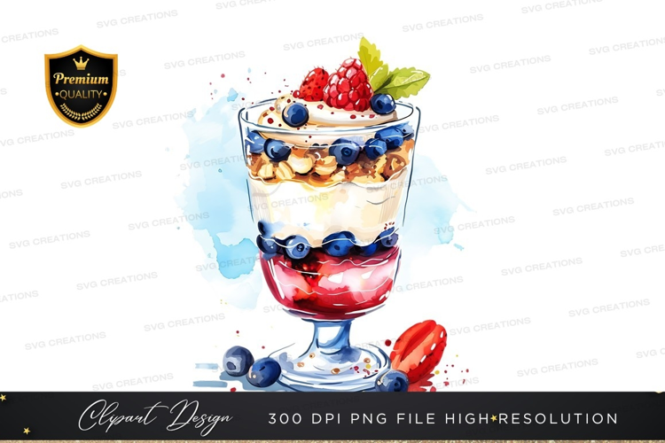 Illustration Fruit Watercolor Raspberries Blueberries Dessert Cream Berry Nuts Parfait