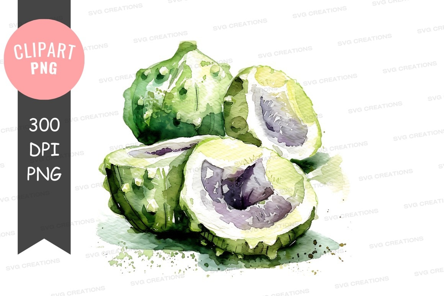 Similar Design Products to Watercolor illustration of sliced bitter melon