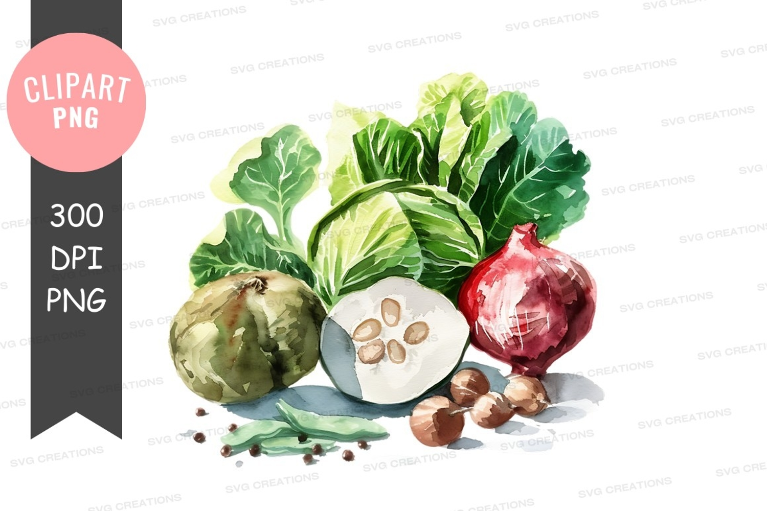 Watercolor Clipart Vegetables Pepper Onion Garlic Cabbage Png Fresh Produce Leafy Greens