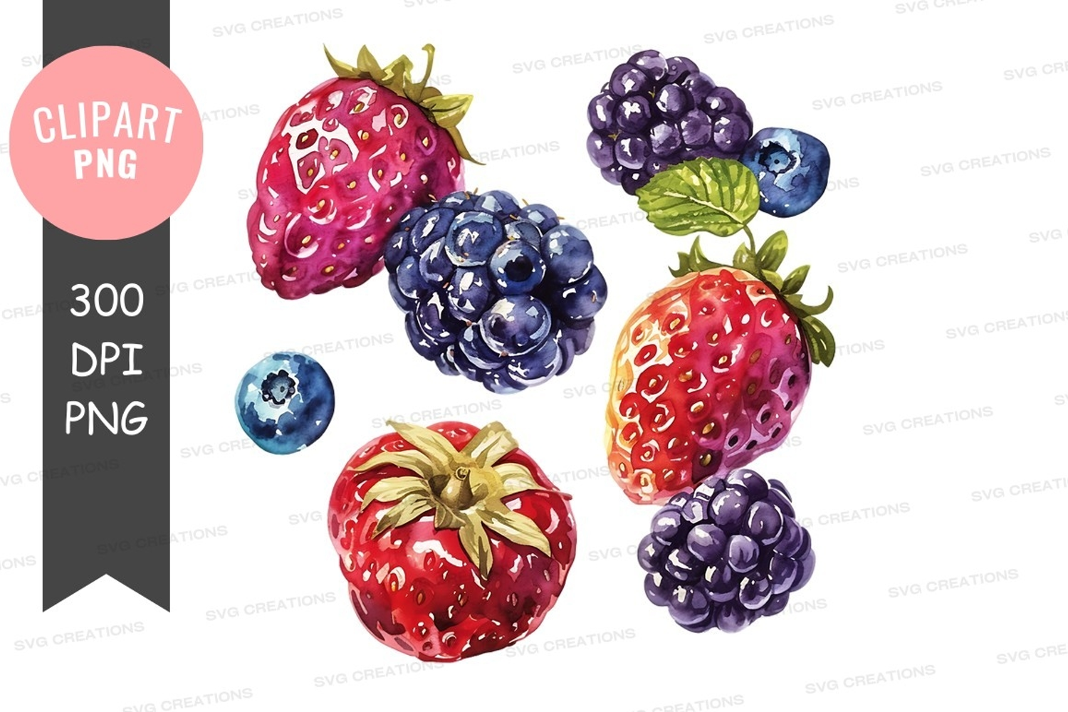 Illustration Fruit Watercolor Clipart Berries Strawberries Raspberries Blackberries Png Blueberries