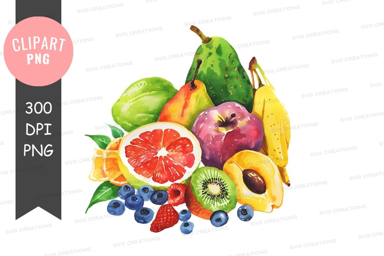 Illustration Fruit Watercolor Banana Pear Apple Avocado Grapes Kiwi Ginger