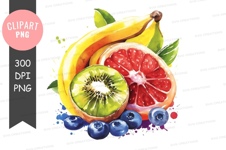 Illustration Fruit Watercolor Clipart Banana Png Blueberries Grapefruit Kiwi