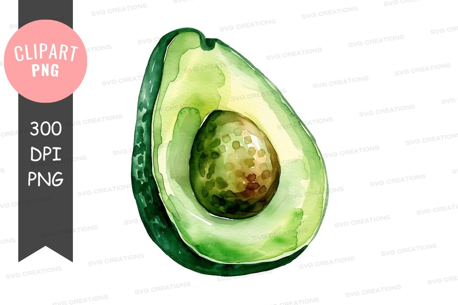 Fruit Watercolor Food Green Clipart Avocado Seed Half