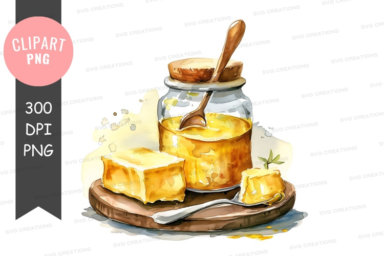 Illustration Honey Honeycomb Clipart Png Jar Wooden Spoon Wooden Board