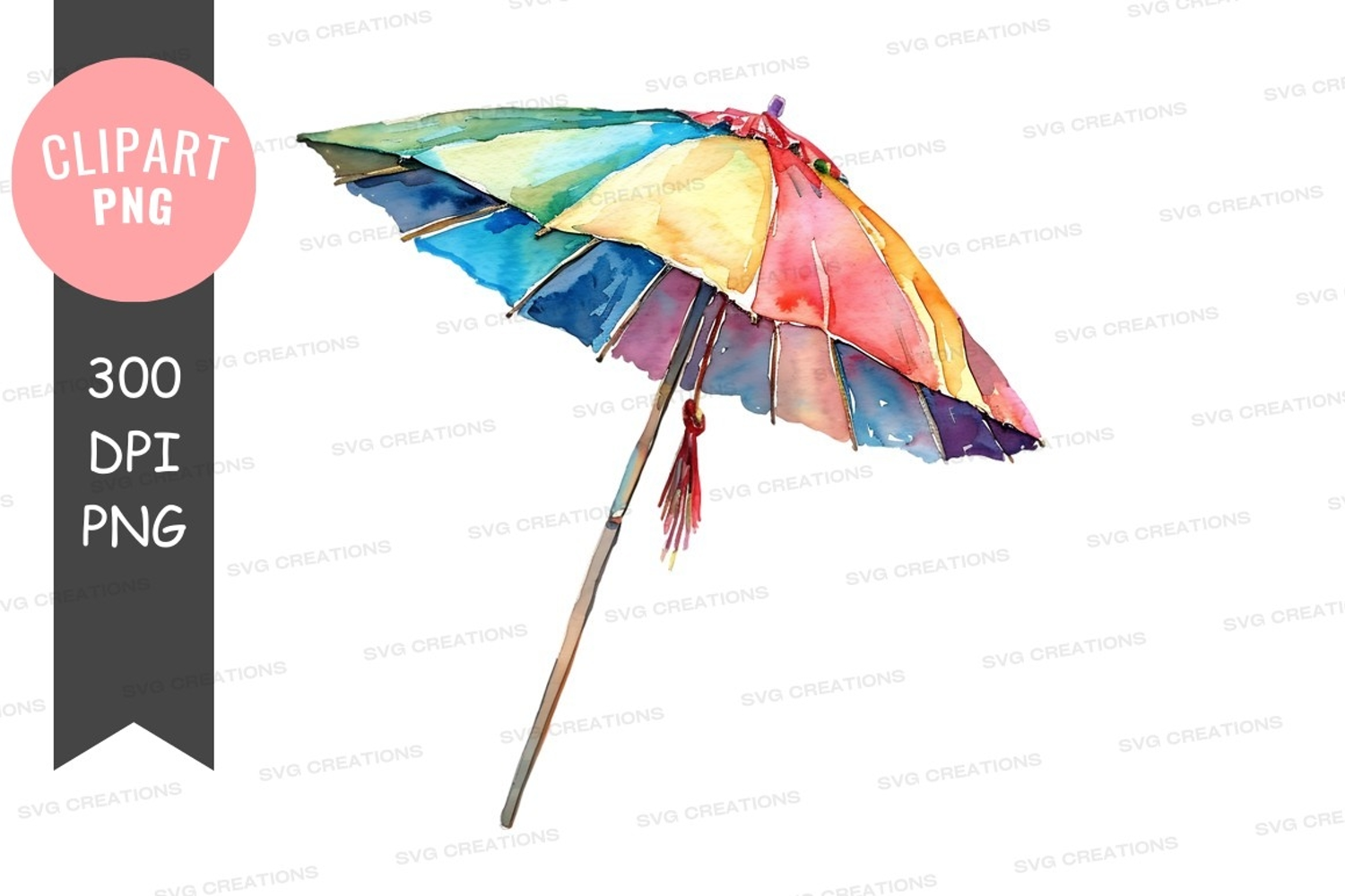 Watercolor Summer Colorful Outdoor Beach Vacation Rainbow Umbrella Sun Protection
