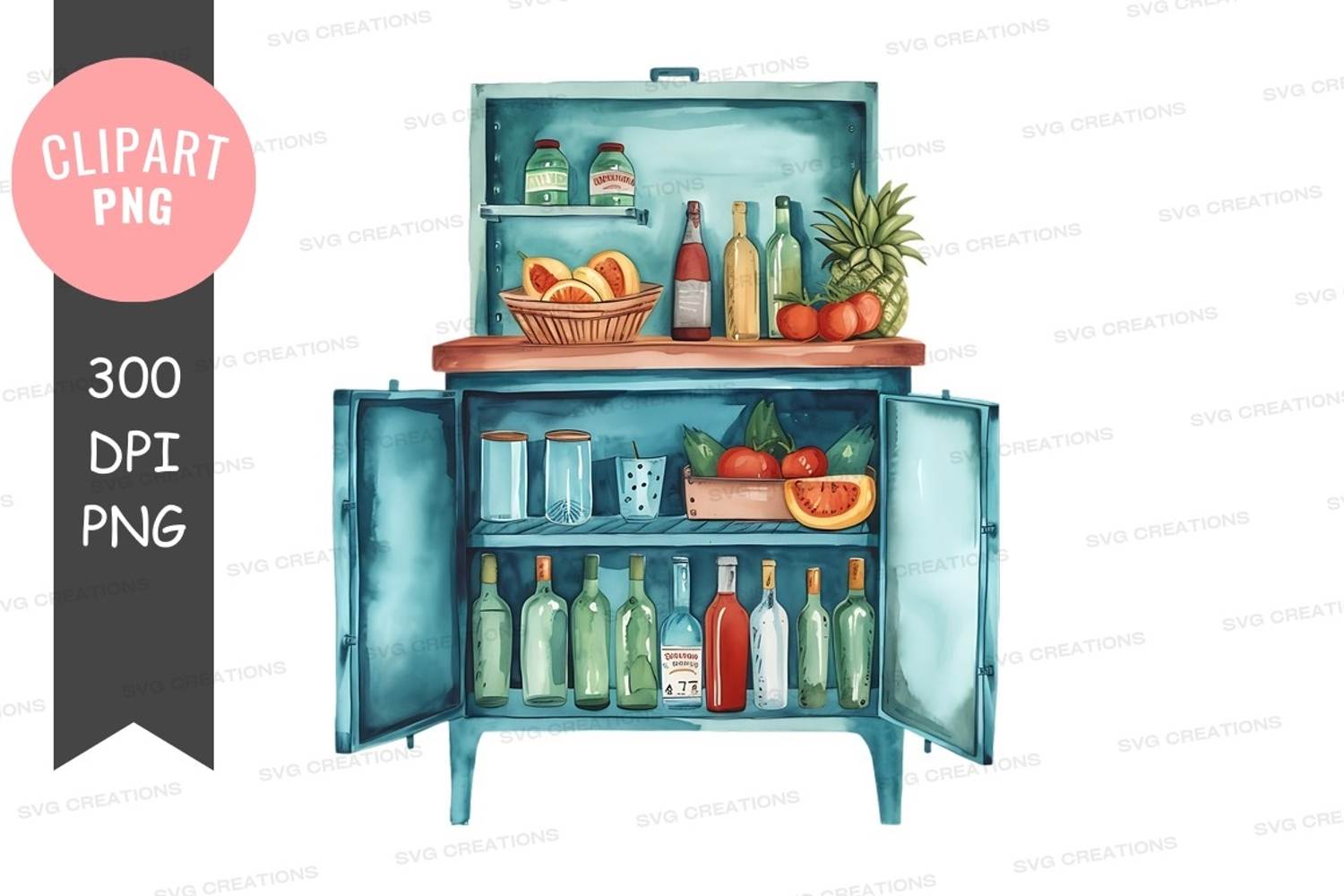 Drinks Blue Alcohol Fruits Glasses Kitchen Beverages Storage Cabinet Home Bar