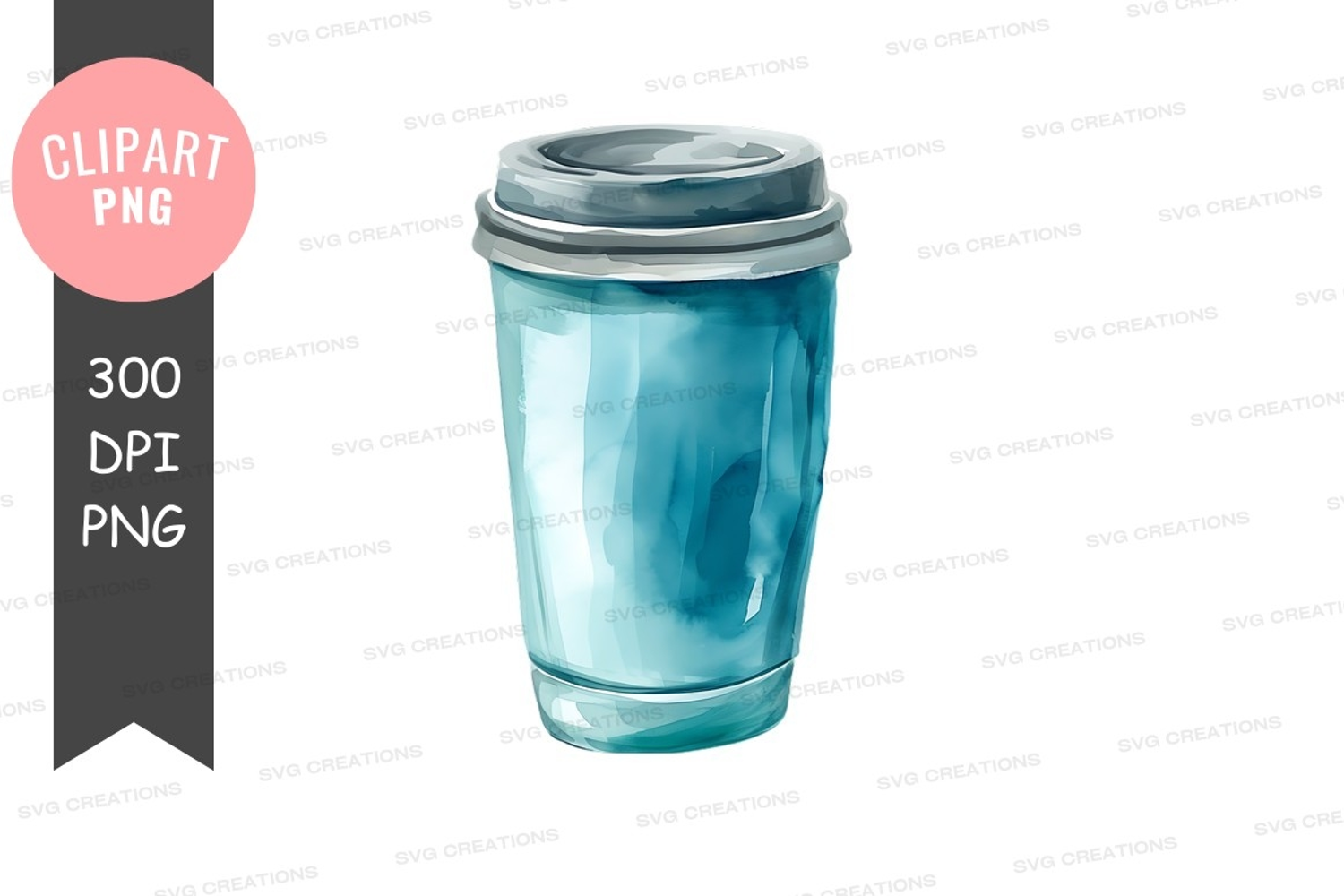 Watercolor Clipart White Background Coffee Cup Lid Blue Cup Disposable Cup Empty Cup