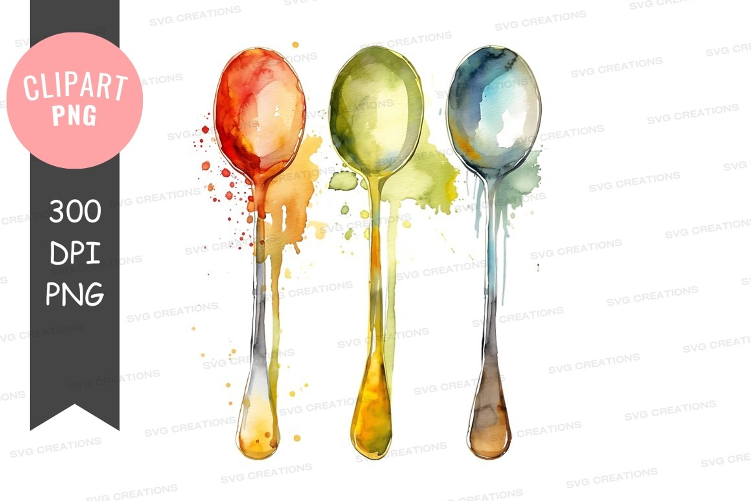 Illustration Paint Watercolor Colorful Artistic Clipart Spoons