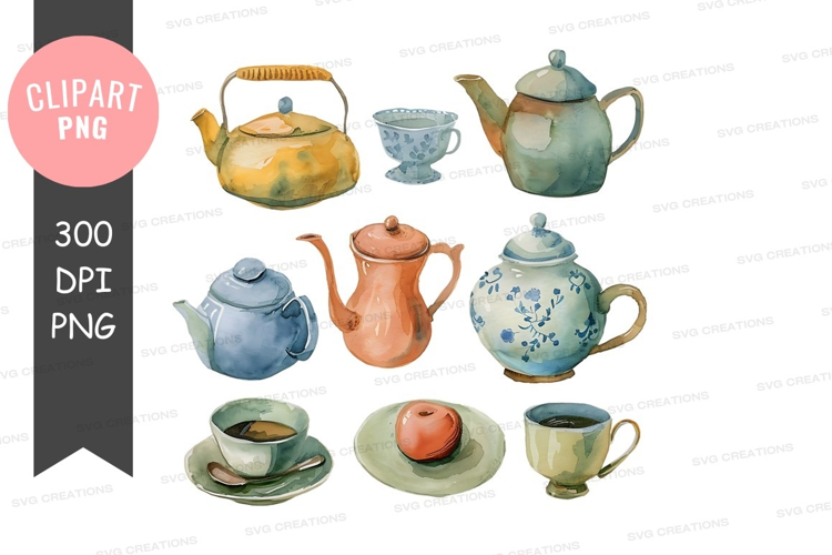 Illustration Watercolor Floral Clipart Tea Cup Teapot Pastry Ceramic Porcelain
