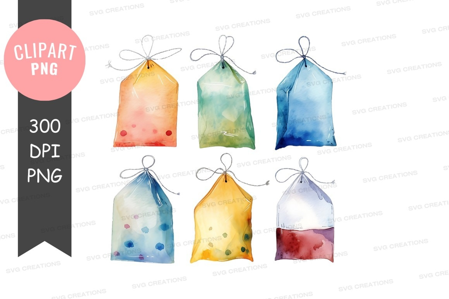 Decorative Watercolor Colorful Gradient Clipart Png Gift Tea String Tea Bags