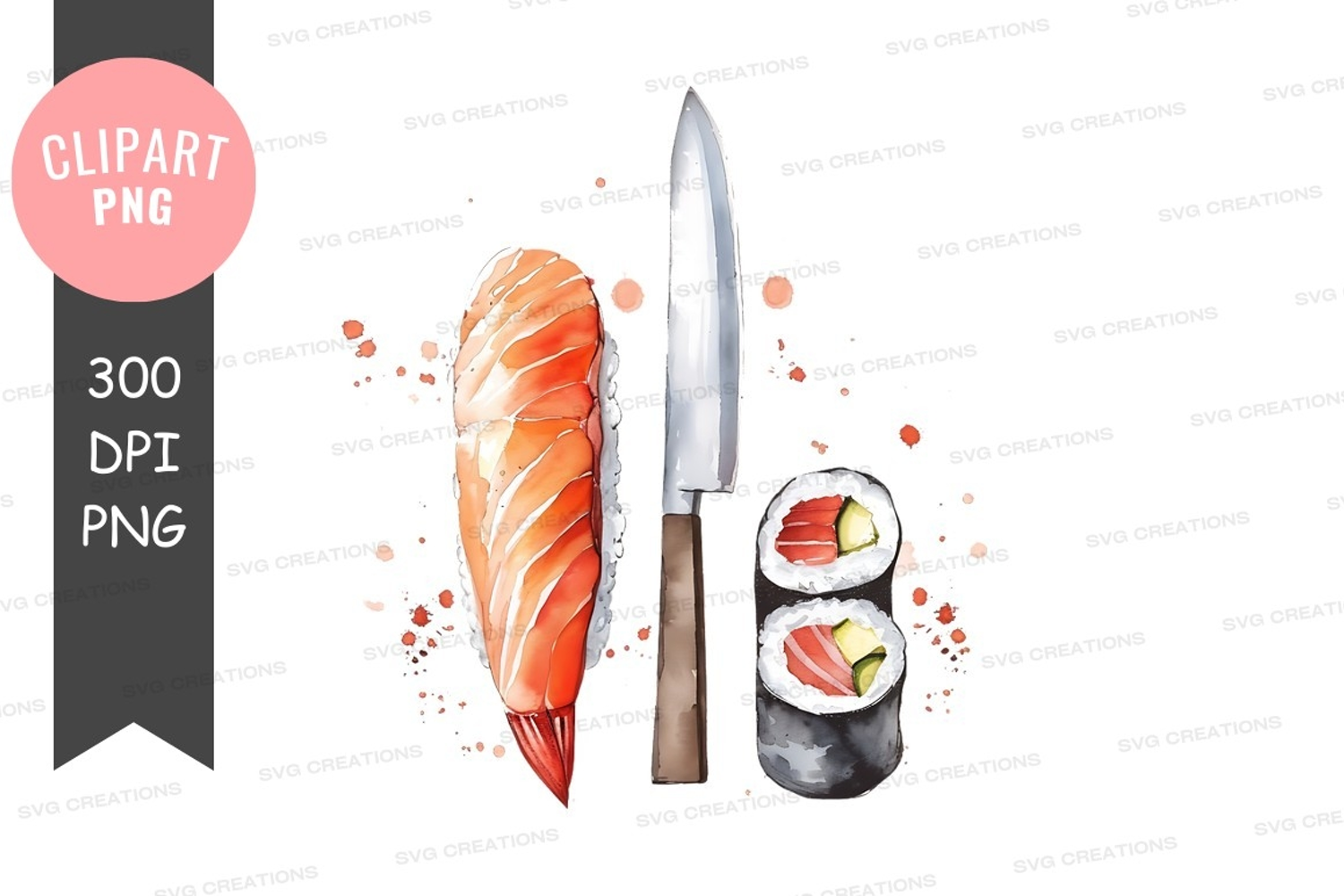 Watercolor Clipart Knife Salmon Sushi Sushi Roll Food Preparation