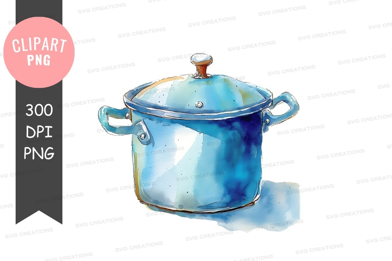 Watercolor Clipart Blue Png Cooking Kitchen Pot Enamel
