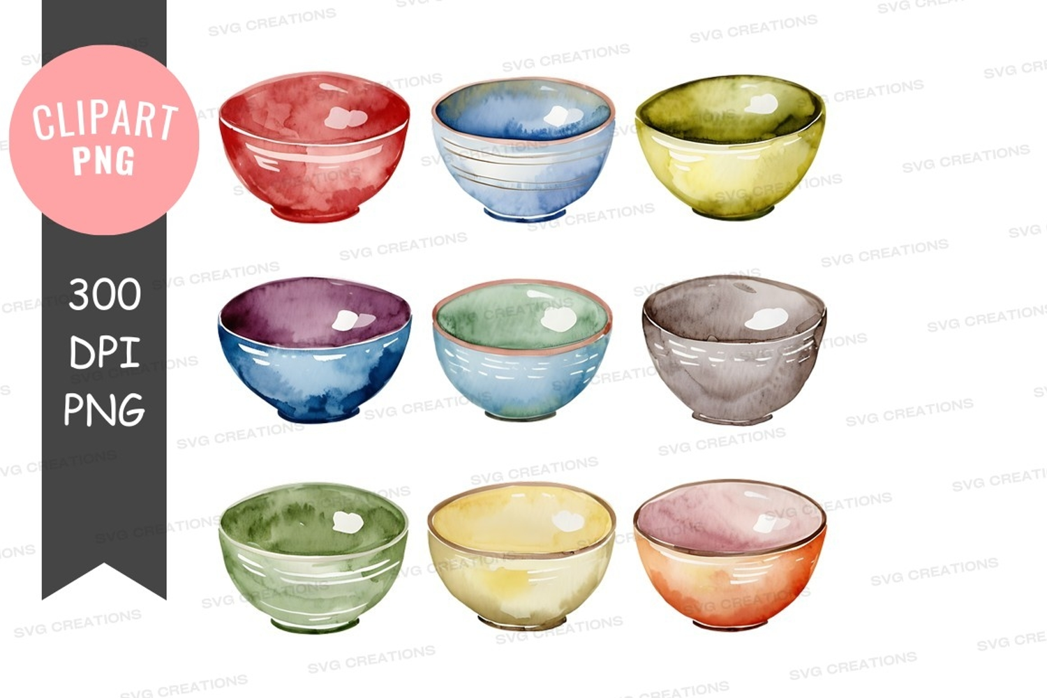 Colorful ceramic bowls clipart png example image 1