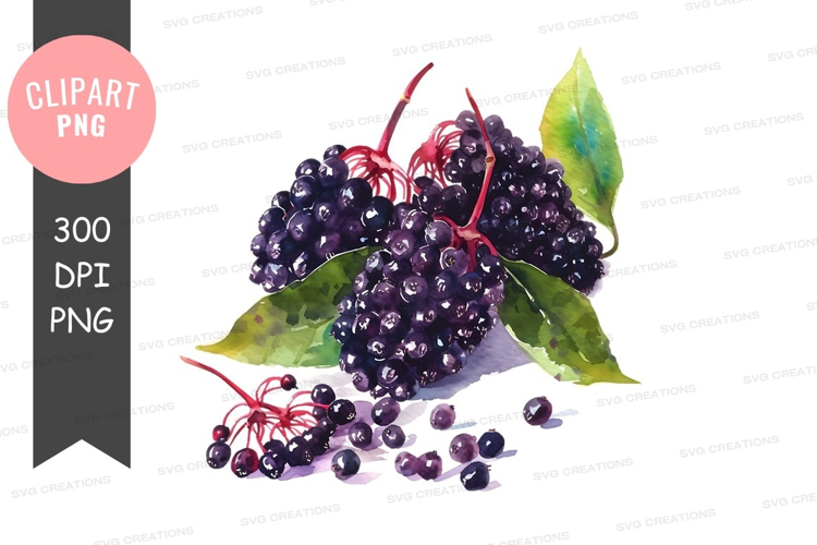 Illustration Watercolor Nature Leaves Berries Fruits Clusters Stems Elderberries