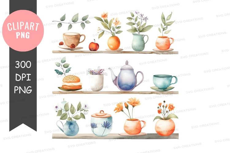 Similar Design Products to Watercolor kitchen shelves clipart png