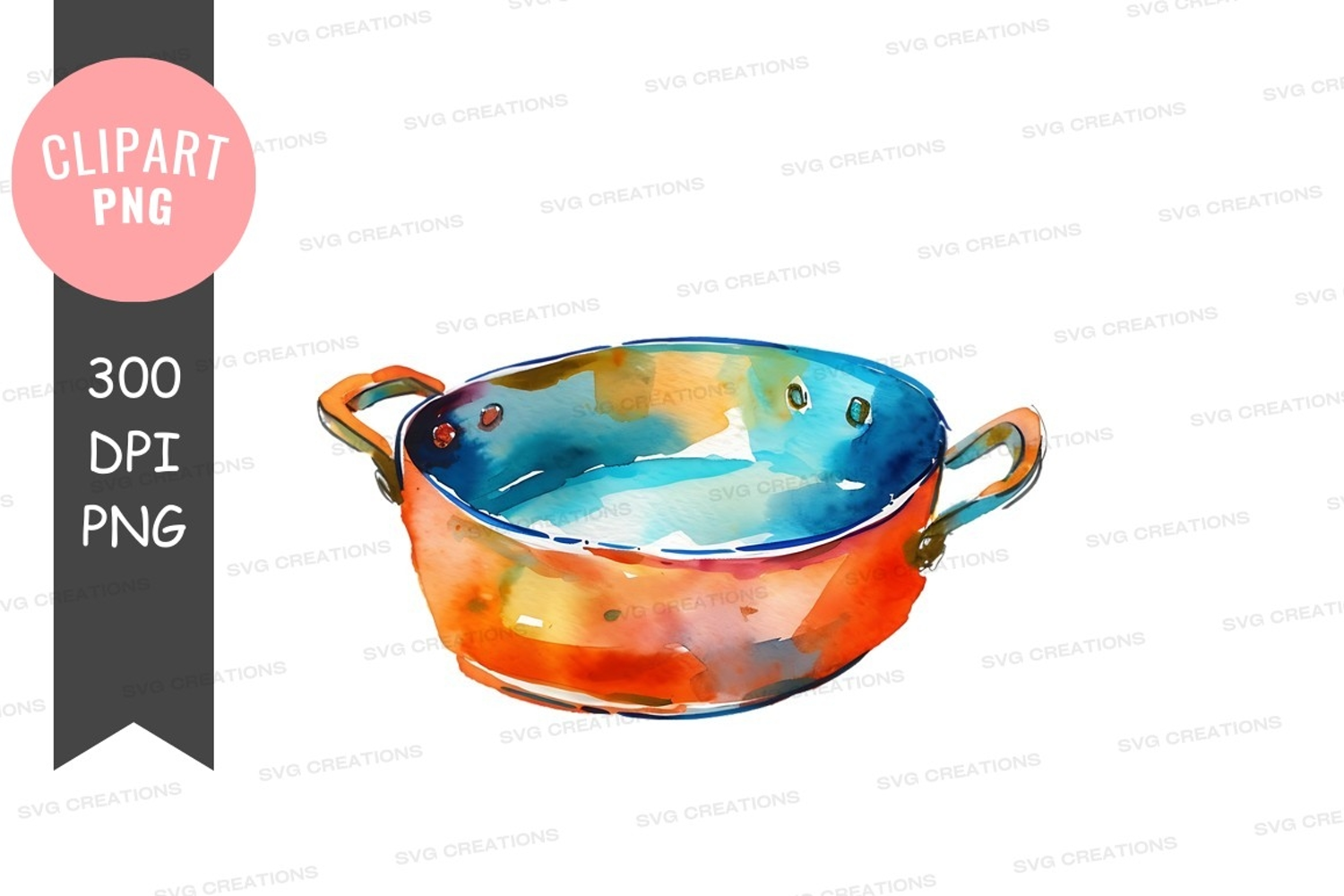 Illustration Watercolor Gradient Copper Orange Blue Yellow Cooking Kitchen Pot