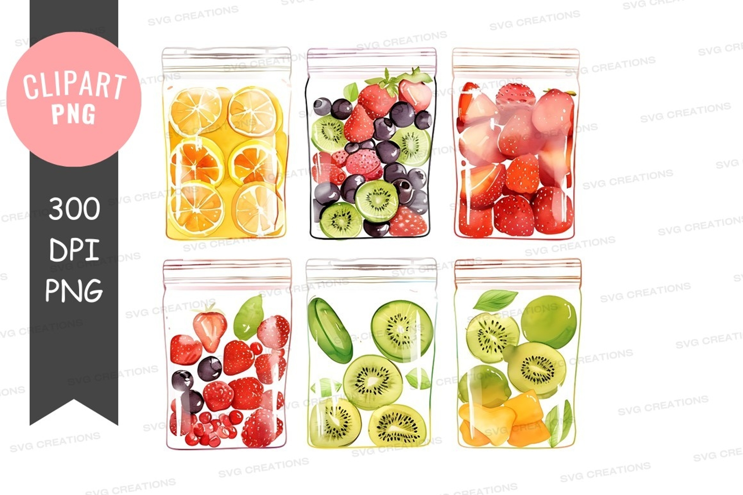 Fruit Clipart Berries Strawberries Raspberries Lemons Oranges Fresh Fruits Kiwis Transparent Bags