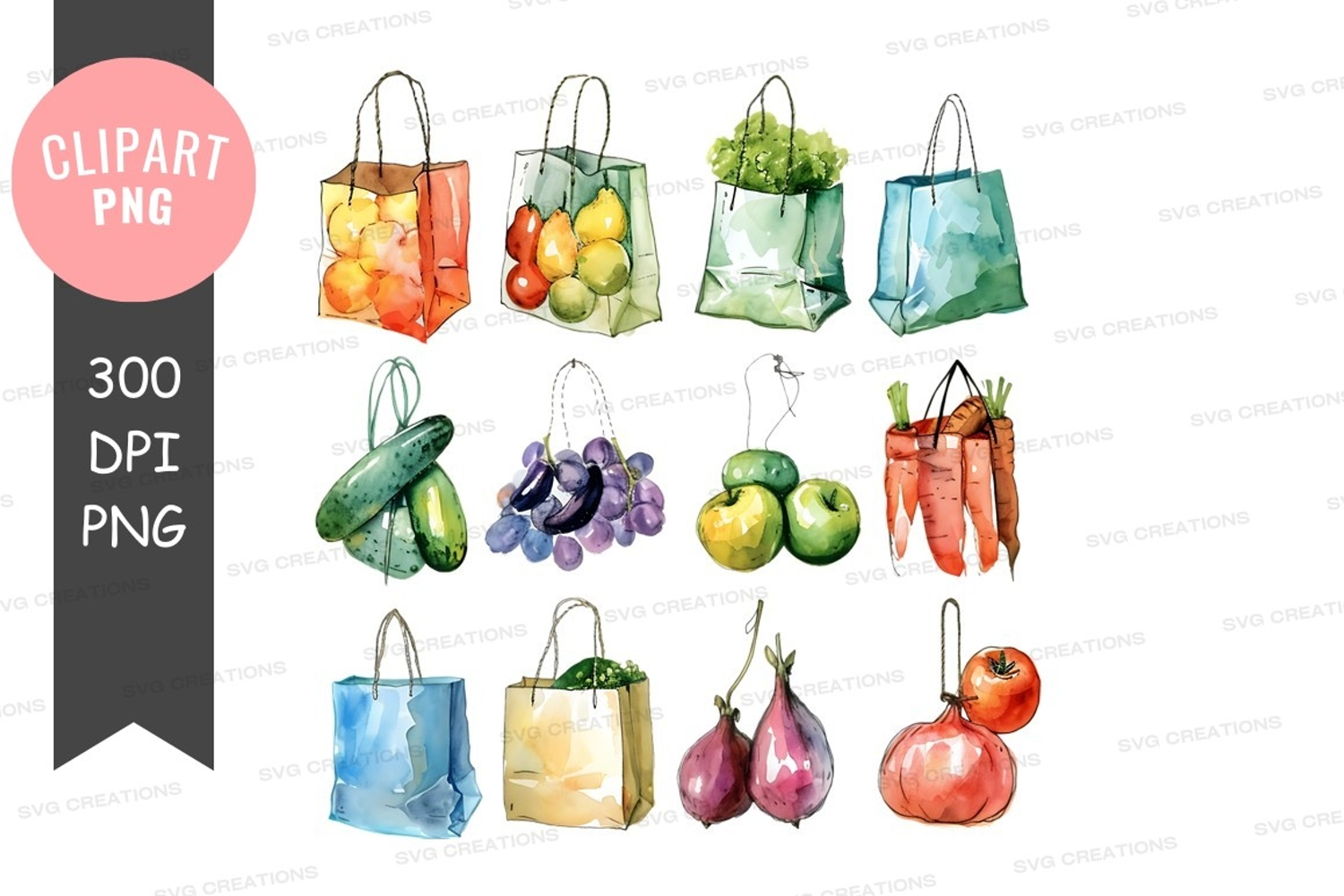 Fresh produce in shopping bags clipart png example image 1