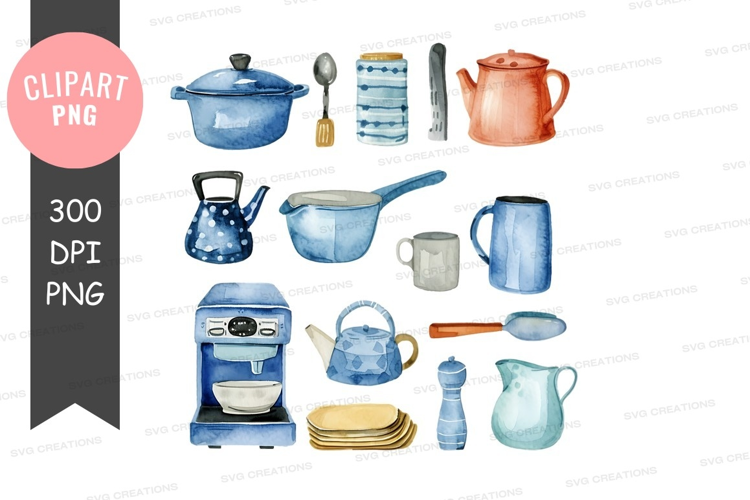 Watercolor Clipart Png Cooking Kitchenware Utensils Pots Cups Pans Coffee Maker