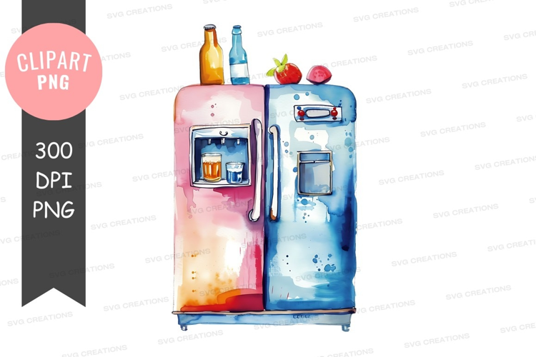 Illustration Colorful Clipart Fruits Pitcher Bottles Refrigerator Kitchen Appliances Freezer Water Dispenser