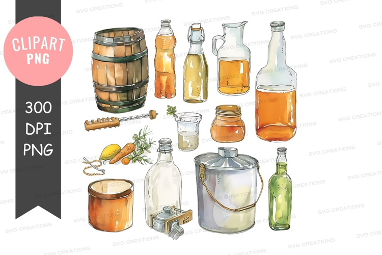 Vintage Watercolor Drinks Beverage Barrel Jars Bottles Containers Jugs