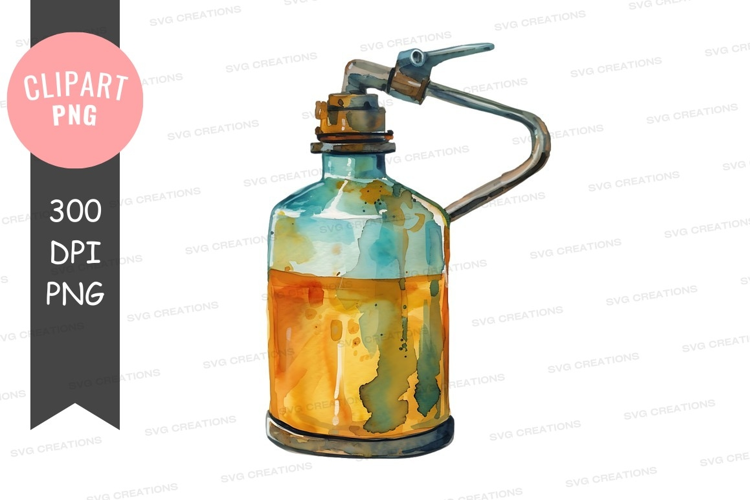 Watercolor Metal Rusty Clipart Handle Spout Oil Can Faded Paint Wear And Tear