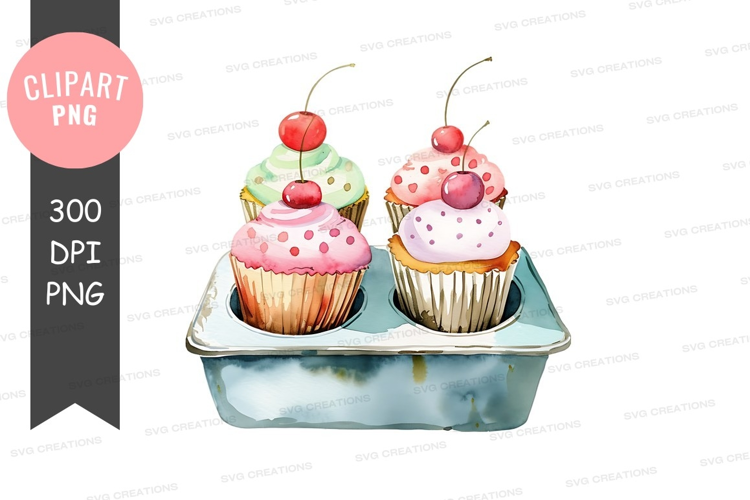 Illustration Cupcakes Clipart Png Cherries Dessert Baking Frosting Sweet Treats Muffin Tin