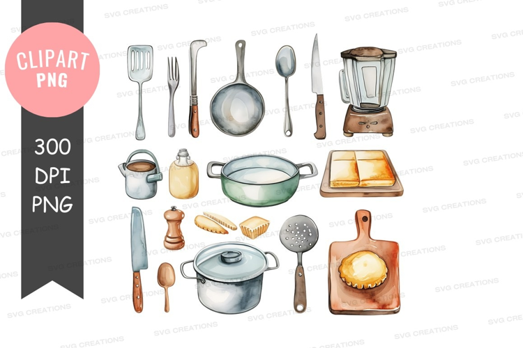 Watercolor Knife Kitchen Spatula Utensils Teapot Tools Forks Blender Skimmer