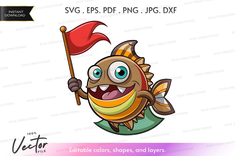 Cartoon Animal Vector Happy Fish Sea Clipart Stick Flag Red Flag